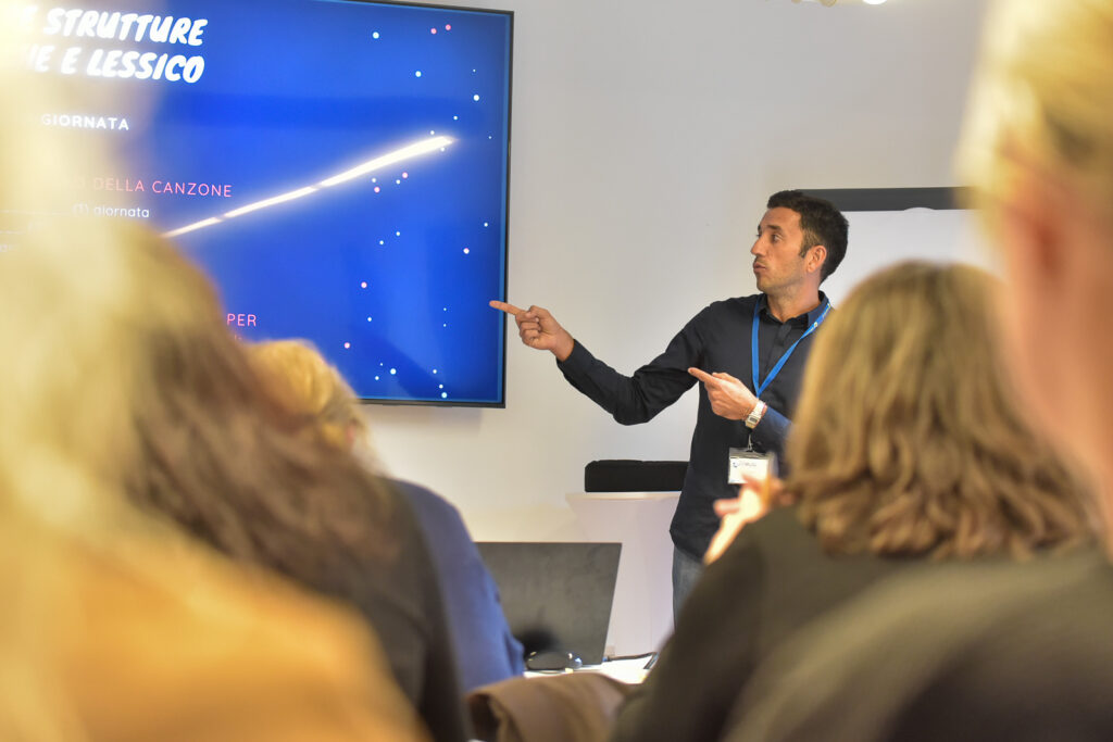 Abstract: Il workshop prevede una prima fase nella quale verranno forniti suggerimenti pratici e idee per insegnare l’italiano con le canzoni. Successivamente, gli insegnanti saranno guidati nella creazione di unità didattiche utilizzando canzoni di Sanremo 2023. L’obiettivo del workshop è mostrare il ruolo che la musica può avere nell’apprendimento, favorendo il coinvolgimento emotivo dello studente.