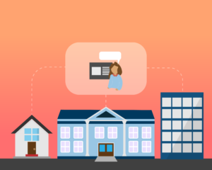 - Hybridunterricht – ein Teil der Schüler/innen ist in der Klasse, ein Teil daheim, wie z.B. im Schichtbetrieb, und wird über Videokonferenz zugeschaltet